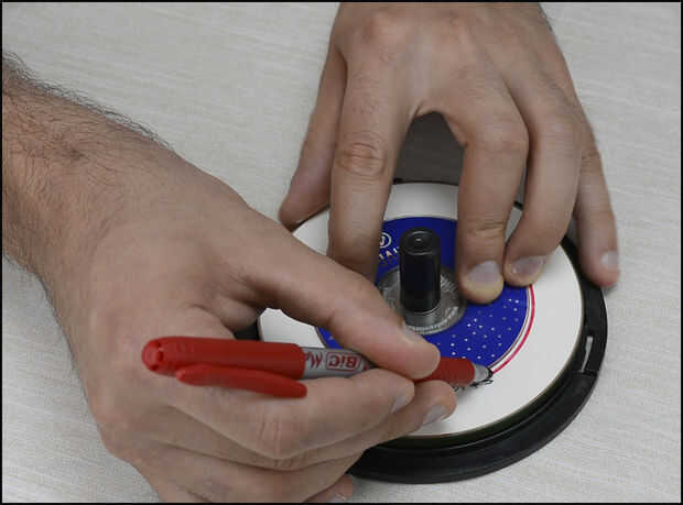 Puse un CD pequeño 8 cm en la parte superior de otro CD y utiliza para dibujar un círculo.