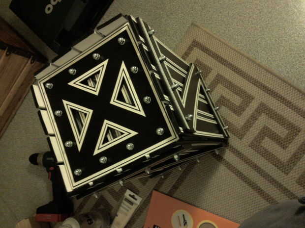 sí, es una caja del teléfono con botones de trabajo y una aleta flippity, hecha de pegamento y palitos. es 90% popsicle palos porque el "núcleo", si se quiere, de los paneles en la parte delantera y trasera es tablero de la carpeta, allí es amor