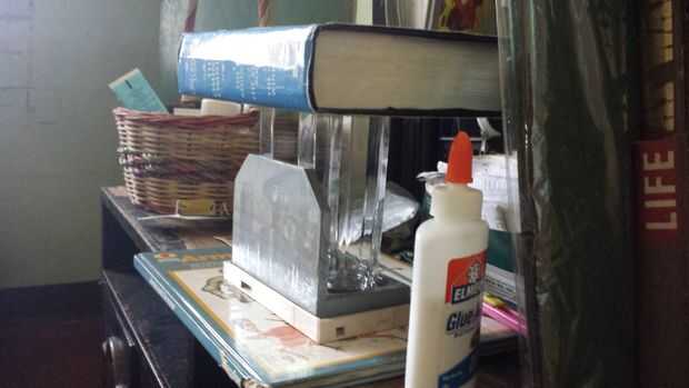 tan deslizante en el panel trasero dentro del lado panel marco, laico esta configuración sobre una superficie plana, poner un poco el pegamento en los bordes y esquinas y deje que se seque. el panel trasero realmente no estaba plano en todo así que poner algo de peso sobre ella mientras que unido al marco del panel lateral. Me aseguré de que mi peso estaba cubierta con cinta adhesiva para que el pegamento no se adhieren a él.