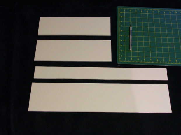 Usando un cuchillo afilado, cortar las siguientes tiras de espuma base tablas y etiqueta ligeramente a un lado con el lápiz (A, B, C, D) punta: usando un cuchillo afilado es esencial tanto en términos de seguridad y también lograr cortes limpios. Una hoja sin filo producirá espuma rotas, estropeando el resultado final.