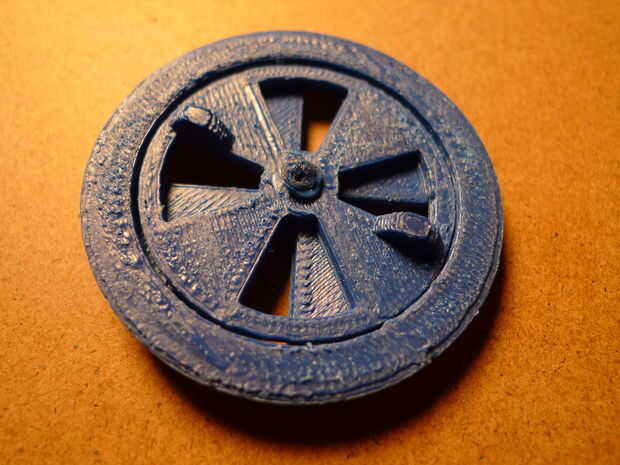 El pasador de las vueltas de ventilación alrededor es una sección del filamento de 3,0 mm ABS que tiene los extremos "martillados" con un elemento caliente, como un soldador. Usted puede limpiar hacia fuera el pequeño agujero con un 1/8" pedacito de taladro que solo es un poquito mayor que 3,0 mm.