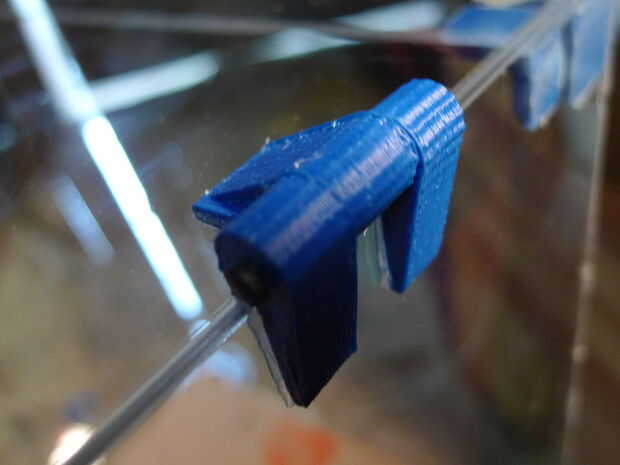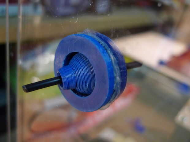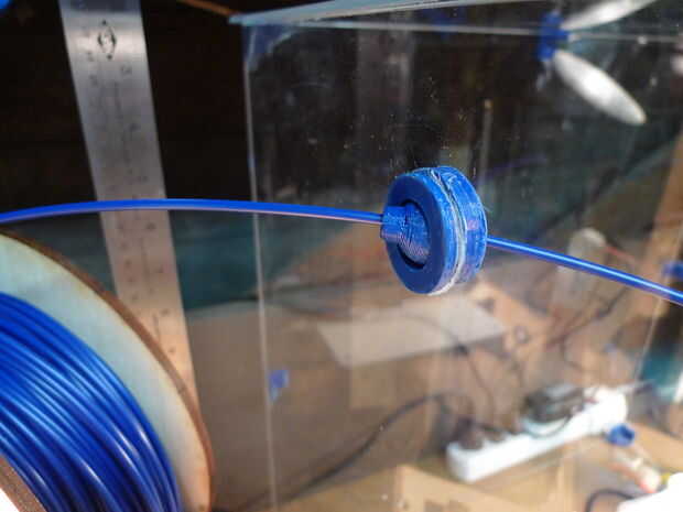 Gizmacci tres es una ventilación regulable que se ajusta en el agujero de 2 pulgadas en la lámina superior de le caja. El pin del centro es una sección del filamento de 3,0 mm que tiene los extremos "martillados" con un instrumento caliente como un un soldador. Usted puede limpiar hacia fuera los orificios con un 1/8" pedacito de taladro que solo es un poquito mayor que 3,0 mm. Antes de que pegue Gizmacci tres en su lugar, voltee la caja, asegúrese de que la película protectora es extraída hacia atrás alrededor del agujero en la parte superior del recinto. Creo que Obtén un mejor resultado si Unte el pegamento en el perímetro del agujero y luego coloque la ventilación.