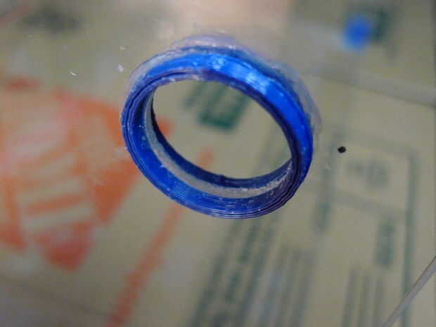 Gizmacci cinco consisten en los anillos de paso y 1 5 pulgadas giratorias. Una característica molesta de la hoja de acrílico es que defectos del borde de corte o perforación pueden desovar grietas de romper el corazón (me preguntan cómo sé esto), creo que reforzar cualquier agujero en plexiglás es un seguro barato. Pega los anillos a cada lado de los orificios de acceso de cableado y recortar cualquier exceso de pegamento desde el interior del agujero.