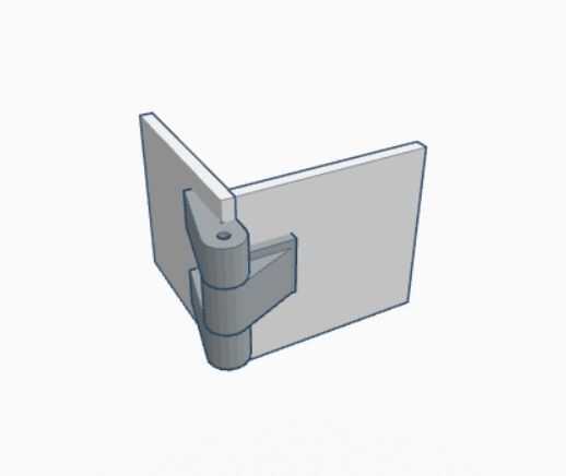Gizmacci cuatro son las bisagras que la puerta se abrirá. El pasador de la bisagra se cuelga de es una sección del filamento de 3,0 mm ABS que tiene fines "martillado" con un elemento caliente, como un soldador. Usted puede limpiar hacia fuera los agujeros de la bisagra con un 1/8" pedacito de taladro que solo es un poquito mayor que 3,0 mm.