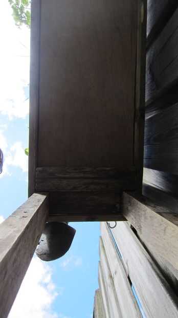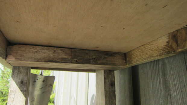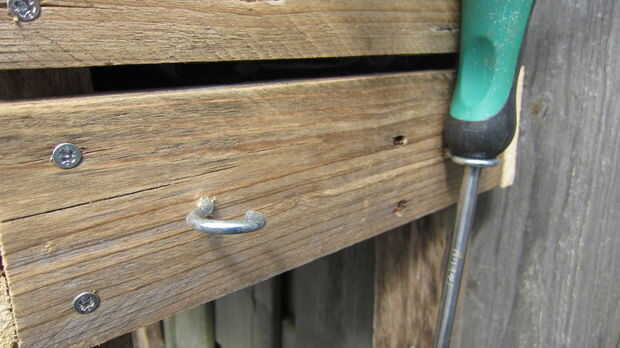 Primero quiere poner tablones de la plataforma más largos en la tabla de 3 por 5.5 cm o 1.18 por 2,16 pulgadas (estas serán las piernas). Hacer esto dos veces, pero asegúrese de que los huecos entre las tablas largas son por lo menos 1,5 cm o 0,6 pulgadas de ancho. Ahora poner la menor 25 por 10 o 9.8 por 3,9 en el marco como se ve en la imagen. Ahora ponemos la placa de madera contrachapada en el marco. Tienes que poner la fama con la tabla de 3 por 5.5 cm o 1.18 por 2.16 pulgadas que le quedan de las piernas, seguras estas con tornillos o clavos (no importa). Si nos fijamos ahora en la caja puedes ver en ambos lados hay pequeñas lagunas. También puede rellenar estas con la izquierda sobre los tablones de las piernas. Pero tienes que enroscar estos del lado. Lo hice con tornillos de gancho y woodglue. Así puedo colgar cosas en el lado.