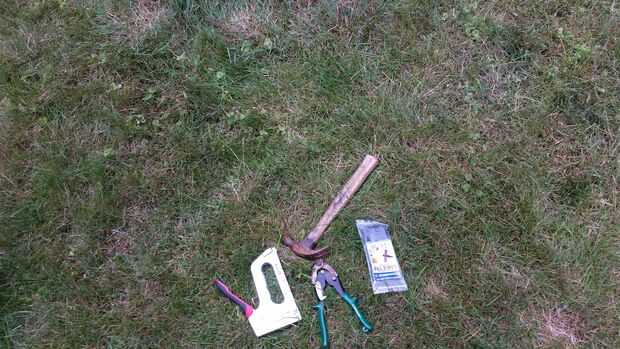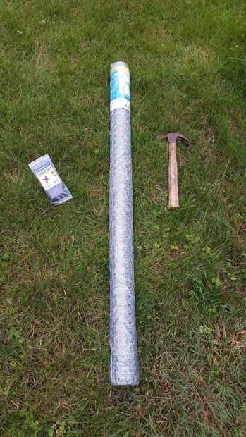 utilicé alambre de pollo largo 25 pies alrededor de 42 pulgadas alto o ancha. y a partir de una esquina grapado el comienzo del alambre de pollo a la primera junta de corredor, entonces balanceo entonces alrededor de la caja de la flor, a la próxima Junta de corredor o esquina lo estirando luego grapar a esa esquina y continuar. Al llegar al final corte el sobrante dejando un poco extra por lo que puedes poner 4 clavos en el principio aburrido y tendrás una puerta para el acceso a sus plantas.