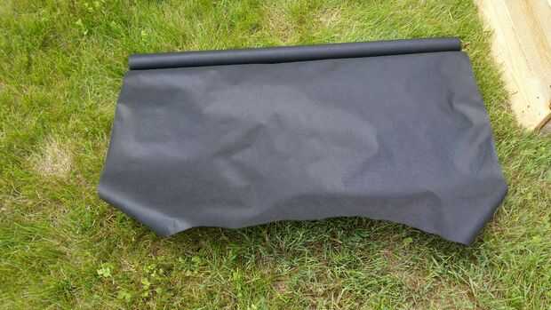 Estirar algunos tela paisaje superpuestas para que hierba no crezca entre él. grapas en los bordes con la pistola de engrapado. Corte el exceso con Xacto cuchillo o navaja.