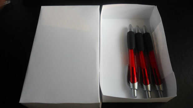 7. cuando ambas cajas están hechas, poner plumas dentro de la caja y caja más grande en la parte superior como una cubierta para la caja más pequeña.