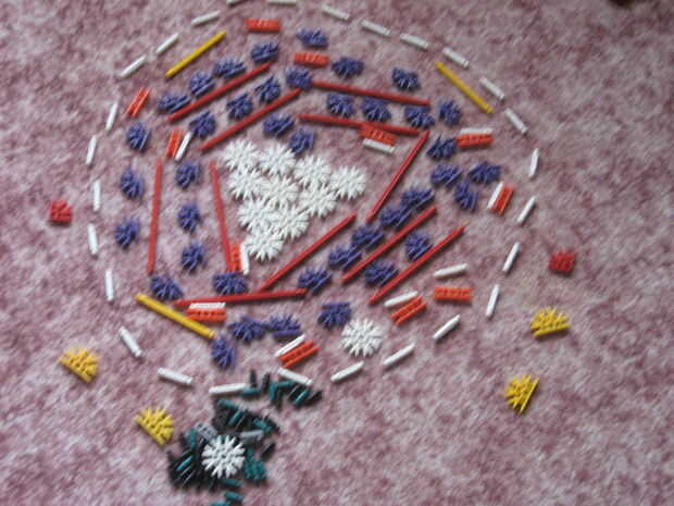 mi máquina de la bola más pequeña hasta la fecha. También, es mi última pequeña bola máquina. De ahora en adelante, voy más grande (ningún retruécano previsto).Piezas:Barras rojas: 3Amarillo barras: 20Azul barras: 197Blanco Cañas: 58Verdes cañas: 100