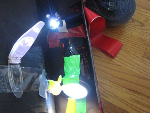 Ahora poner en el plástico. Abrir el interior y llenarlo con tantos flashes como caben.