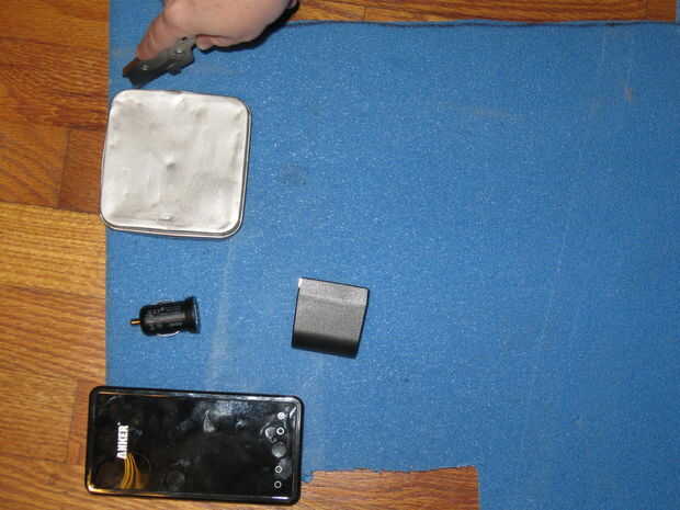 Mida la cavidad interna de la caja. Cortar la espuma para adaptarse.