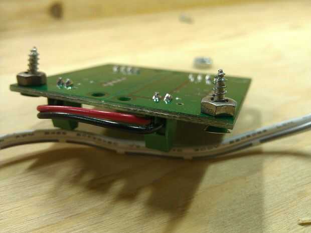 Una vez que la pintura esté seca, se puede montar la electrónica. Usé el hardware barato para montar los controladores mini encima de la madera. Pase los cables de alimentación a cada mesa. Había conectado un enchufe DC corto fuera de la caja para el adaptador de pared.