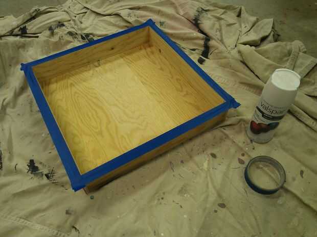 Usé el agujero que anteriormente perforé para colgar el cuadro. Pintar el exterior brillo o mate negro. Lea las instrucciones para las condiciones y tiempos de secado.