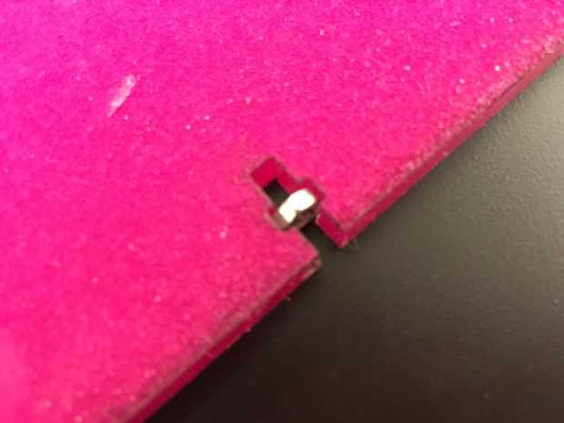 Usé un sistema al estilo T toma para conectar entre sí las diferentes partes de la caja. Este fue el sistema utilizado en el viejo Makerbot lo-o-Matics para conectar los paneles laterales de madera, y siempre me gustó la sencillez de la misma. Simplemente deslice una tuerca en la ranura y luego instale un audaz a través de láser agujero para conectar entre sí dos piezas de acrílico. Al apretar, hacer tan cuidadosamente, no quiere apretar y crack el acrílico.