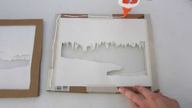 Para hacer espacio para la iluminación, os adjunto dos más marcos de cartón. Esto creó un compartimiento pequeño detrás de la imagen que era sólo lo suficientemente grande como para una cadena de LEDs.