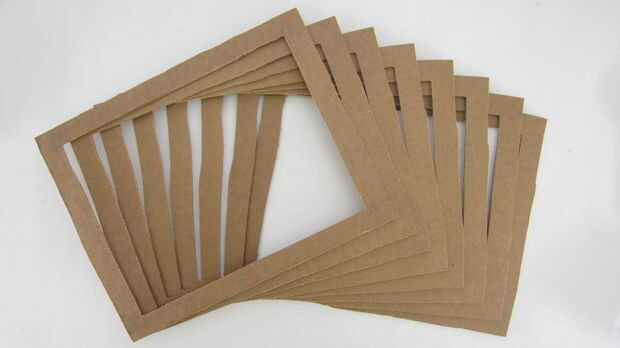 Para crear el efecto 3D, es necesario espaciar las capas. Para ello he utilizado un marco de cartulina entre cada capa. Usted puede hacer los marcos de cartulina cualquier tamaño que desee. Pero el interior dimensiones del cada marco tiene que ser un poco más pequeño que la dimensión exterior de la cartulina. Así, se superponen.
