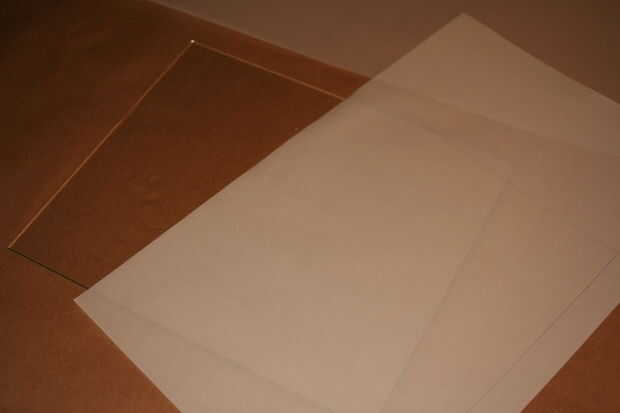 Una luz difusor esparce la luz ya que viene de la caja para que usted obtenga una hoja incluso de puntos de luz más brillantes y más oscuros. Hay toneladas de maneras de difundir la luz. Lo mejor que encontré fue la elaboración de vitela. A diferencia del papel de la impresora, tiene una consistencia uniforme. Si utilizó una hoja de papel de impresión verá todas las fibras en el papel. Dos hojas funcionó bien para mí. Corte, talla, emparedado entre los paneles de vidrio y deslice todo el asunto en la ranura superior. Debe ser ceñido pero Deslice hacia adentro y hacia afuera fácilmente.