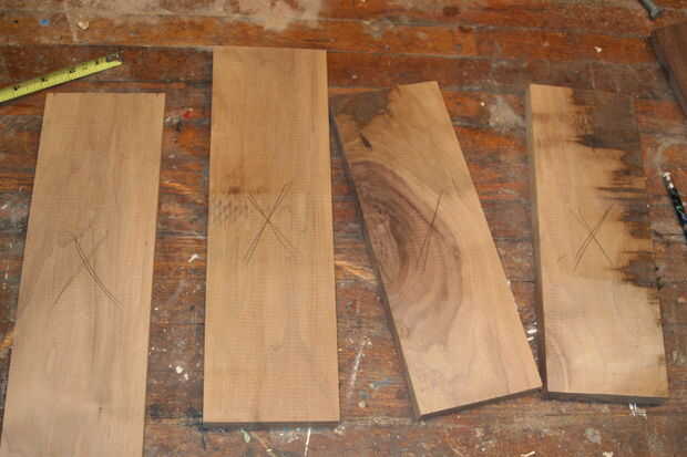 2) rasgar sus cuatro tablas hasta un ancho de 4" con una sierra de mesa.