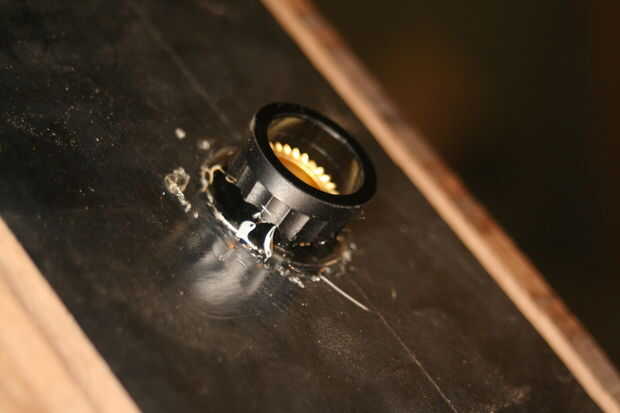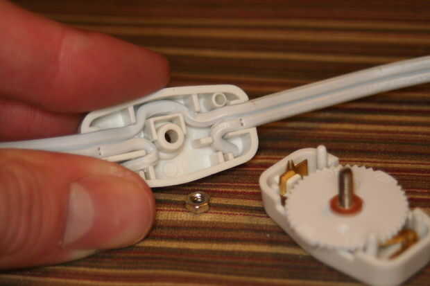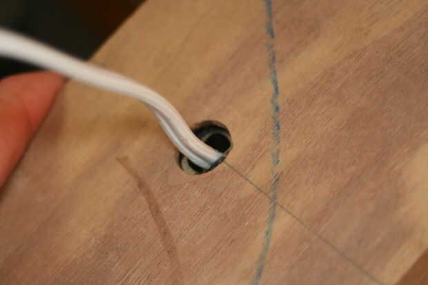 2) corte el alambre en el centro y la toma de alimentación en el agujero. Utilice pegamento caliente para fijar el encaje en el agujero.
