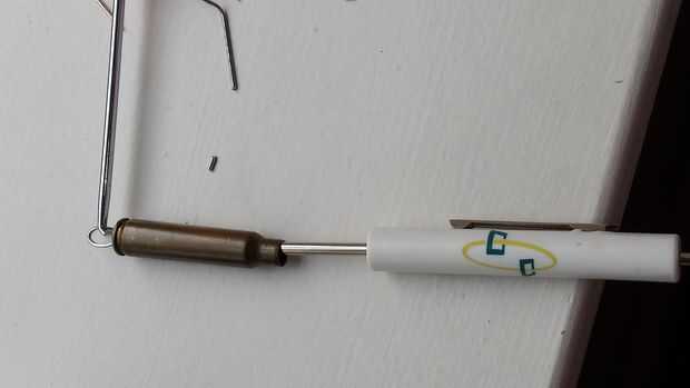 4-una vez que el bucle está dentro de la carcasa, utilice el destornillador en el otro extremo de la carcasa para ensanchar el extremo abierto del pequeño lazo que creó