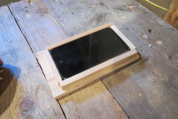 Se trata de un soporte de madera teléfono hecho con madera de 1/8 de pulgada, utilizando la vida técnica para hacer madera flexible de la bisagra. Es ideal para ver películas o espectáculos o vídeos en la orientación del paisaje, pero no puede apoyar