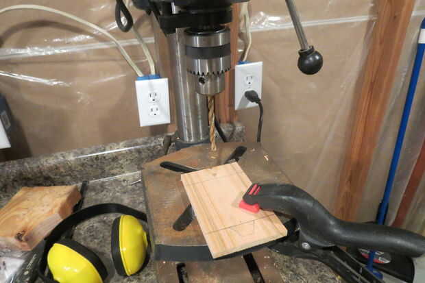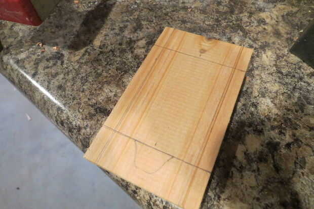 Una vez seco el pegamento, sacó el iPod y utiliza mi sierra para cortar los bordes al ras con los demás. Luego usé mi imagen que dibujé antes para marcar dónde cortar otra pieza de pino fino, pero antes de corte hacia fuera, perforé el agujero para la cámara frente a frente.