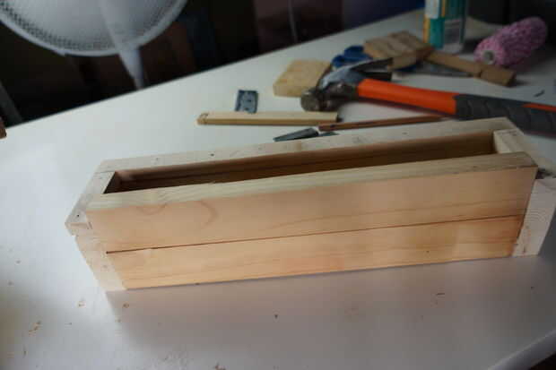 Ahora que se hace, seguir adelante y perfore un tornillo o cuadras a la espalda o de la espalda y el frente si se quiere ser realmente precisos (yo escogí a atornillar a la parte posterior para la eficiencia). Y entonces debe hacerse para la caja del plantador.