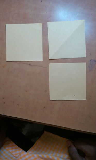 Paso 1: cortar el papel en 3 pedazos cuadrados.