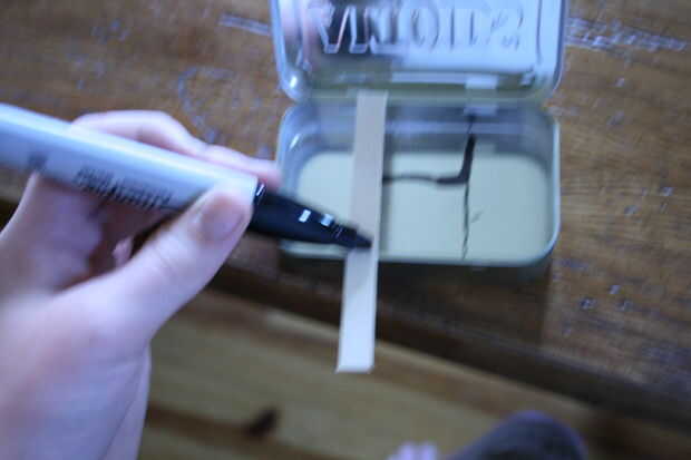 (usted puede hacer lo que el tamaño que desee). Primero poner los suministros en orden aseado (como tienes paredes). Luego dibujar con el rotulador alrededor de sus ganchos. (Los que serán las paredes). A continuación, volcar todo lo y corte sus palitos a la misma longitud que las líneas. Cuando termines todas tus piezas de corte pegamento abajo. Cuando se pegan por hacerlo a la otra lata altoids.