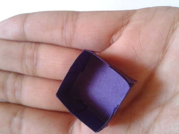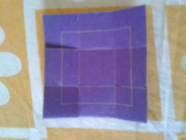 Corte a lo largo de la Plaza de 5 cm * 5 cm marcada anteriormente. Mantener el el centro de la plaza como la elevación de base, las aletas exteriores, para que u obtendrá algo como se muestra en la foto 3.