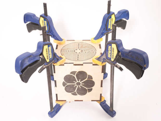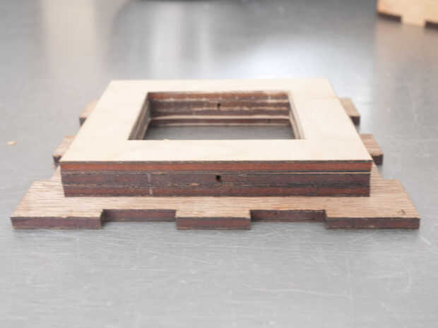 La parte más complicada aquí había implicado la pieza inferior. Aquí puede ver las capas adicionales de la madera en la pieza y el lado que todos debían ser pegadas en orden para que funcione.