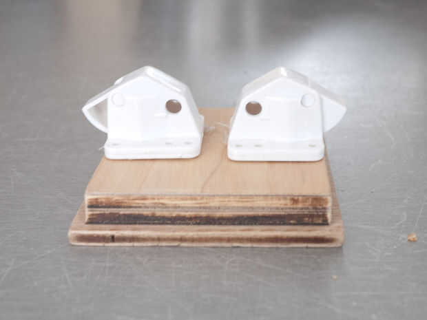 Puse un poco de pegamento caliente dentro de los dos agujeros y coloca los seguros en él. Ahora poner todo junto y movido los pestillos en el lugar adecuado para que los seguros de mantener el medio pedazo de madera como eliminar como sea posible con el resto de la cara del cubo.