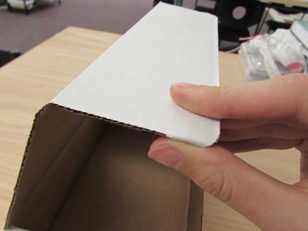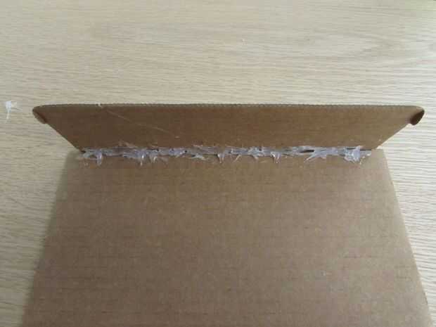 También es útil poner una línea de pegamento caliente en el interior borde de la boca con la tapa doblada en un poco para que cuando el monstruo de la caja se cierra su boca, no rebota en el muy delantero de la caja. Véase el cuadro 5 una referencia visual.