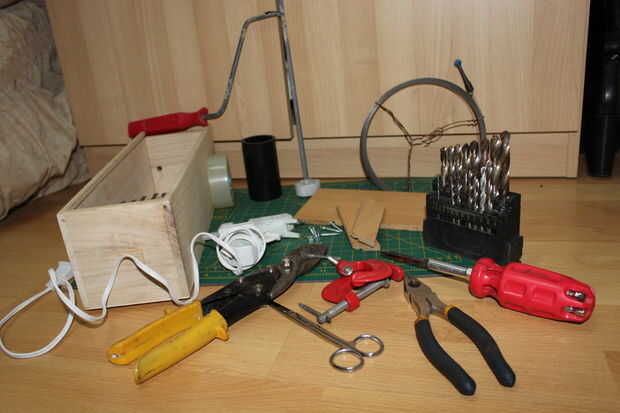 Aquí están el edificio principal elementos y herramientas que necesitará para construir la caja musical: