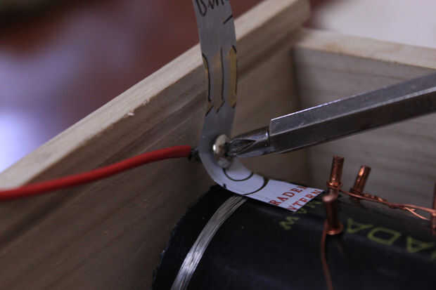 Mide 1/4 '' sobre el tubo de PVC y enroscar la tira cerveza recién montado en el interior de la caja en el extremo opuesto de la manija. Asegúrese de que la tira esté en contacto con el alambre de niobio como la pipa da vuelta. Repetir una vez más.