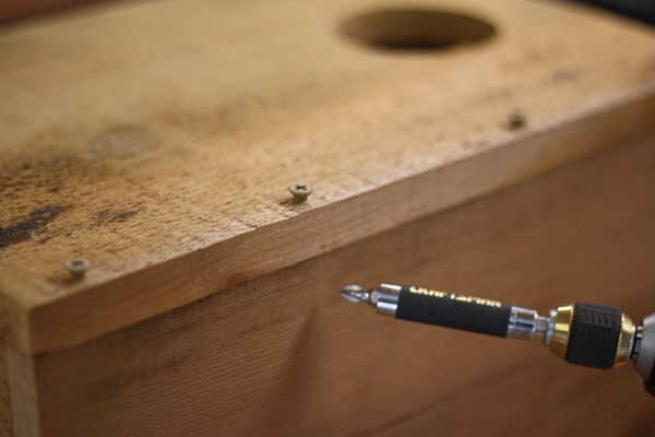 Resistir la tentación de hundirse completamente los tornillos en la madera, es mejor dejar las cabezas hacia fuera algo. Así, cuando la caja se hincha y se contrae cuando está expuesto a los elementos, la madera será menos probable que dividir.