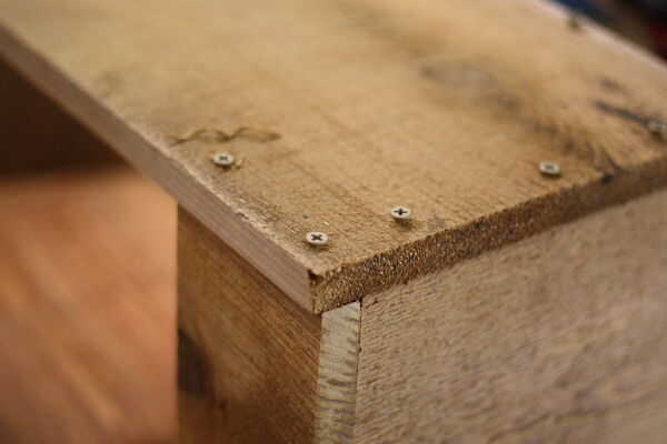 Comprobar que todos los de la alineación se ve bien hasta ahora y luego Perfore orificios piloto a través de la pieza lateral en la parte inferior, entonces ponen tornillos en. Hacer lo mismo con el travesaño.