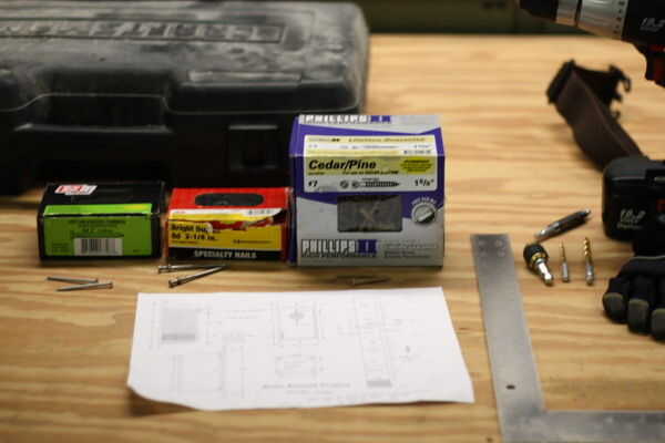 Hardware necesario incluye tornillos de madera grado exterior, clavos a la puerta de bisagra, la forma y estilo duplex más clavos para asegurar la puerta.