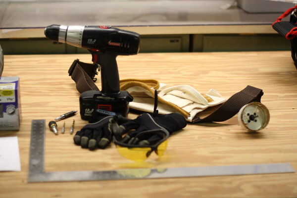Para el taladro, necesitarás varios tamaños de brocas (en mi caso, 1/8, 3/16, 1/4 y 1/2") y broca cabeza de Felipe. Puesto que usted va cambiando entre perforación de agujeros para tornillos, usted encontrará un poco rápido muy útil. Si usted tiene acceso a una prensa del taladro, una sierra del agujero 3" será más rápida para cortar el agujero de entrada.