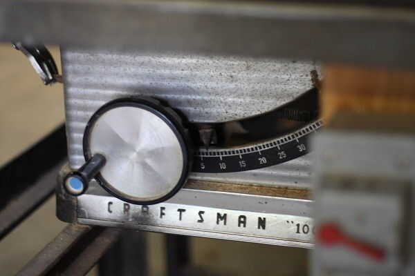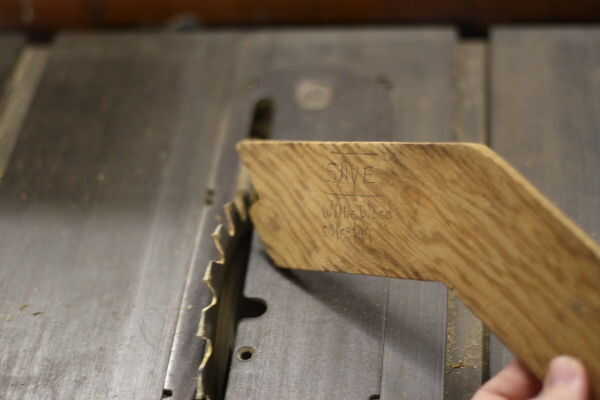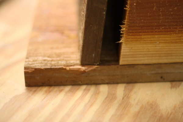 Ahora es el momento para recortar la pieza superior. Desde la parte superior debe tener una pendiente para derramar la lluvia, el borde posterior de la pieza superior necesita cortar en ángulo. En esta tienda tuve una sierra que era fácil de ajustar para cortar en ángulo, y experimenté un poco para averiguar lo que era este ángulo. Ya que son piezas bastante pequeñas, usé esta herramienta especial para impulsar el trabajo a lo largo de más riesgo mis dedos.
