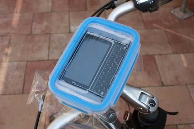 Tratando de usar mi teléfono móvil como un dispositivo de navegación y seguimiento durante una excursión en bicicleta me obligó a buscar un muelle adecuado montarlo en el manillar de mi bici. Estoy usando un HTC desire Z. Este móvil cuenta con un teclado que puede ser doblado por debajo de la pantalla. Es un teléfono con android donde existen muchas aplicaciones de mapeo y navegación en el mercado.