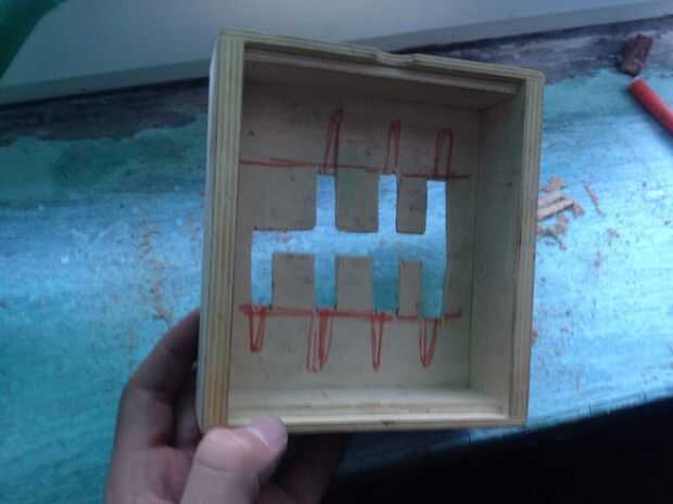 1.corte pequeñas ranuras en la parte inferior de la caja (Foto: primera y segunda),