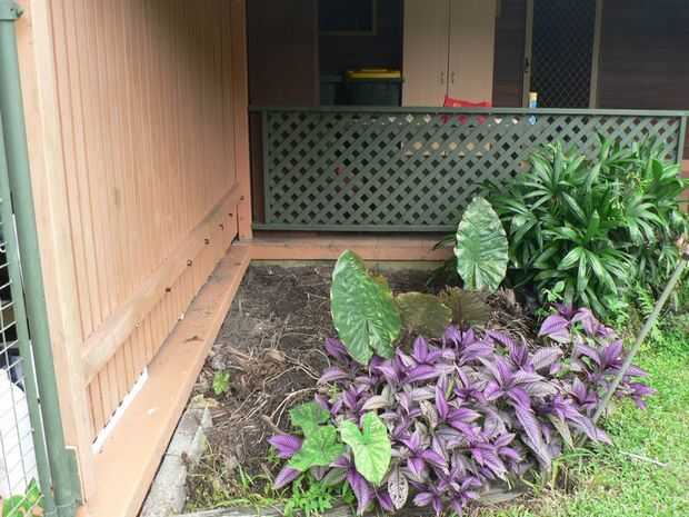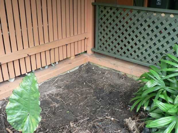Primero, elija un sitio Web. He tenido este rinconcito cerca de la casa que fue el punto más alejado de nuestra casa y los vecinos de al lado. También fue protegido un poco bajo el alero de la casa. También tenía no hay plantas de nota (excepto para una planta de oreja de elefante que era agradable y fácil de cortar) y fue algo descuidado. Perfecto!
