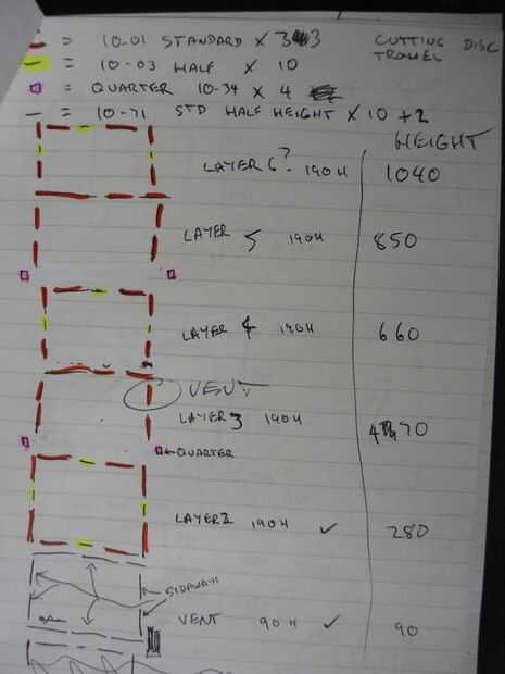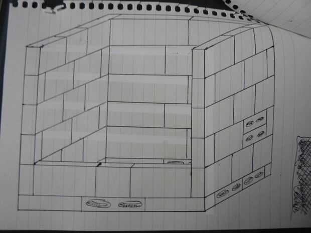 Fui con suficientes ladrillos para hacer la caja de un metro de altura. En el plan también incluí una capa de media altura bloques hacia un lado en la parte inferior para permitir la entrada de flujo de aire con el plan que tiene el aire de escape para dar una ruta de flujo de aire positivo que deben mantener la temperatura y también ventilar los gases de escape con seguridad en el ambiente.
