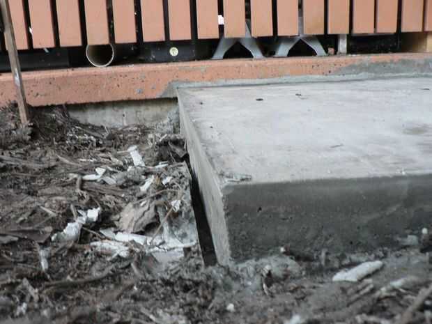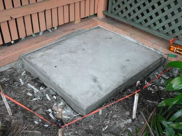 Una vez que logró el encofrado, ví que había sido empujado hacia fuera por el peso del hormigón húmedo. Visible en la segunda foto, tiene una pendiente a lo que no debería estar ahí. La losa de hormigón era todo una vez seco, simplemente de que lado estaba torcida. Ah, bueno, todavía será suficiente para mis propósitos!