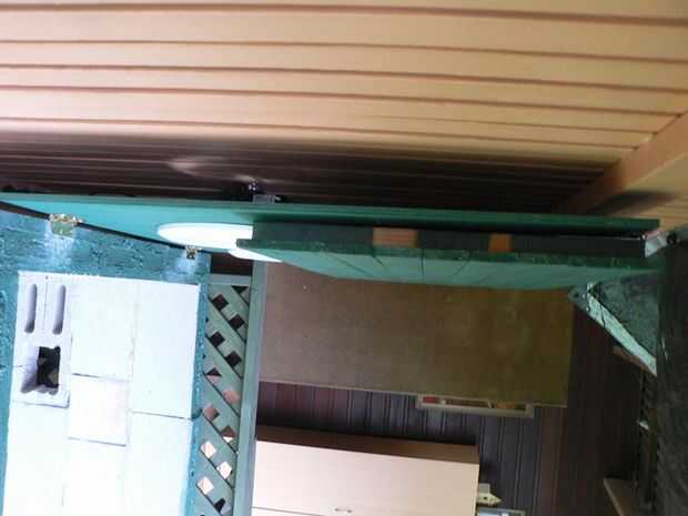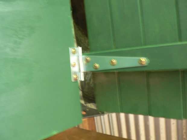Para hacer la puerta, sujeta una pieza de madera vertical a los lados interiores del espacio donde sería la 4ª pared, entonces bastante de atornillar tablones en los de abajo hacia arriba hasta que cubre la abertura. Lo hice como estaba usando restos de madera que ya tenía ahí. Luego le puse un trozo de madera laminada en las bisagras superior, adjuntas algunos en la parte posterior y en el frente para hacer un plegado hacia arriba diseño. Todo esto estaba usando chatarra que ya tenía, así que si tu hacer algo similar y comprar los bits, entonces puede hacerlo diferentemente.