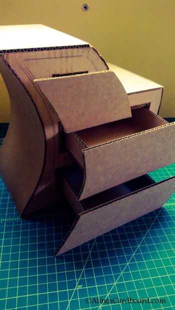 Os adjunto los 2 lados a la parte inferior, de añadir la parte posteriora y el frente con la pistola encoladora. Los corrugaciones se colocan verticalmente en la parte delantera del cajón. Asegúrese de que desliza bien, por eso hice los cajones unos 3/8" menos profundo de los casos.