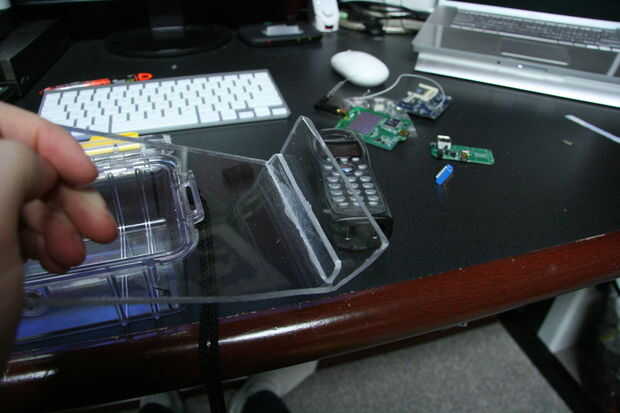 Después de la placa principal fue cortada repetí el proceso con el caso a su lado para formar una hoja que actuaría como un escudo de apoyo para el lector de CF.