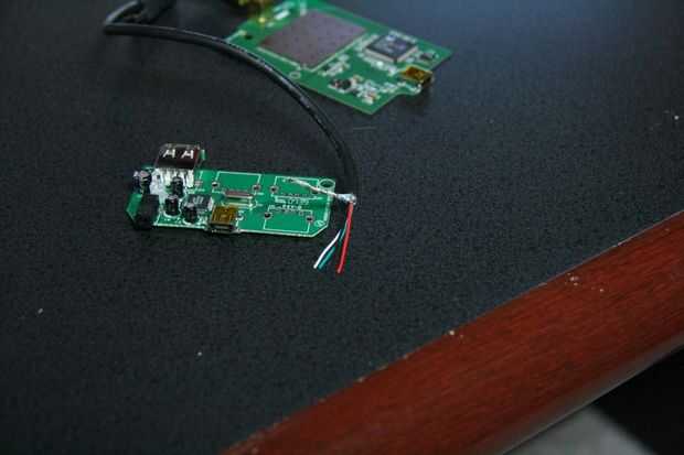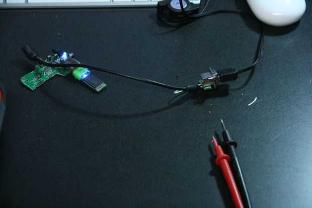 2) originario en un empalme de la soldadura de uno de los puertos ahora liberados en el centro terminando en otro mini de 5 pines a la tarjeta de wifi