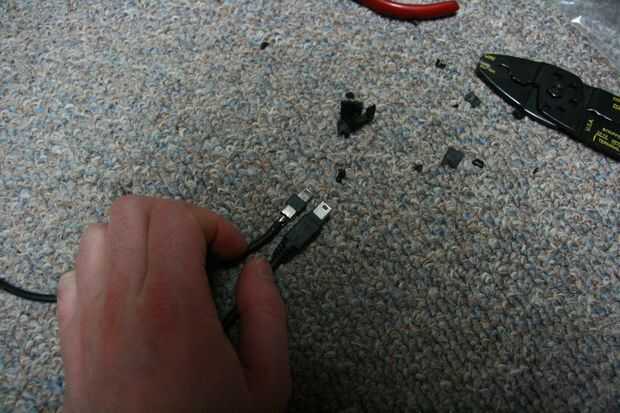 El gran problema era el alivio de tensión estándar Mini de 5 pines cables USB es demasiado largo para permitir cosas que ajustar, así que decidí ir a comprar la basura más barata cable USB pude encontrar (barato = conectores mal construidos, mal construido conectores = mucha menos molestia cuando tirando de ellos apart.)